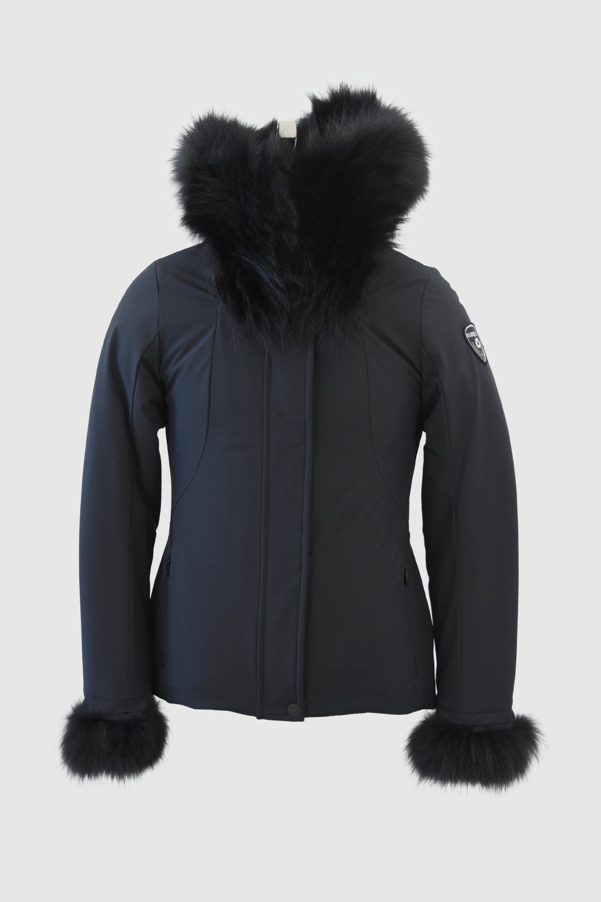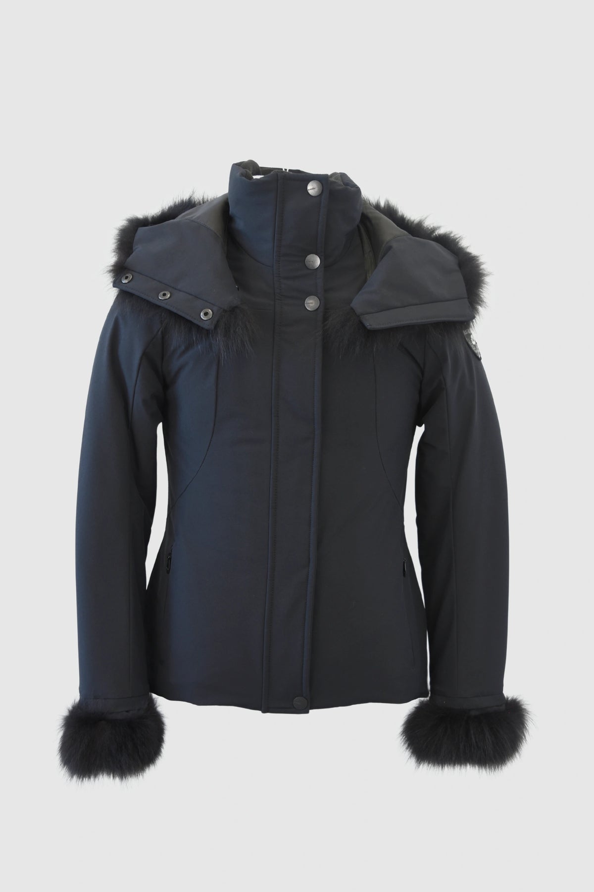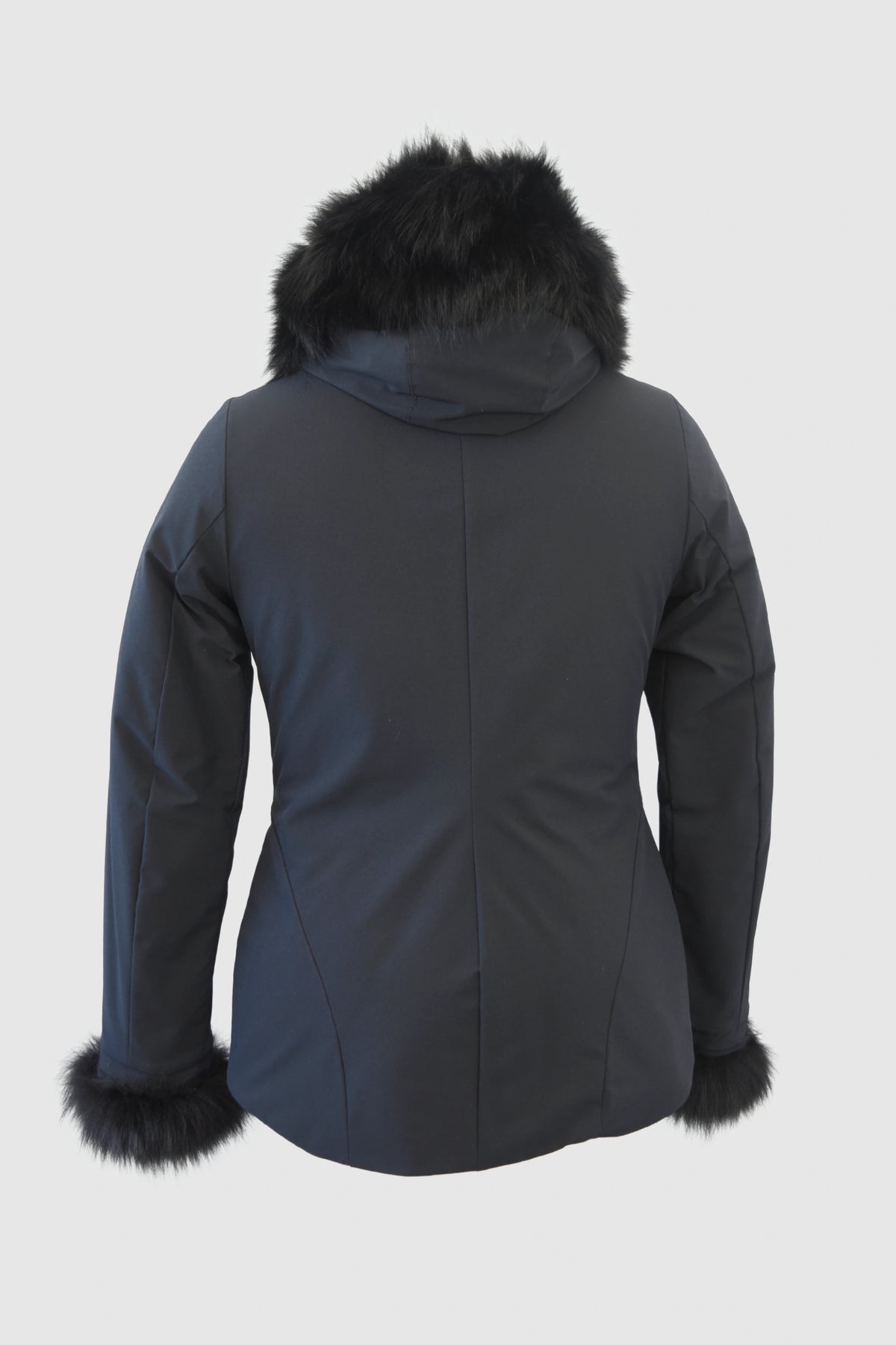 The coat features a removable hood, trimmed with faux fur, which is also present at the cuffs. For maximum versatility, the fur can be removed depending on your mood or the weather conditions, allowing you to easily transition from a chic urban look to a more streamlined and functional style.